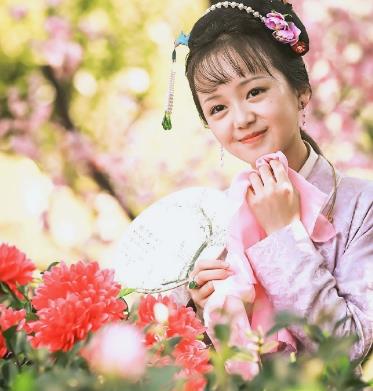 还有扑蝶的动作,在花中分不清究竟哪个是她