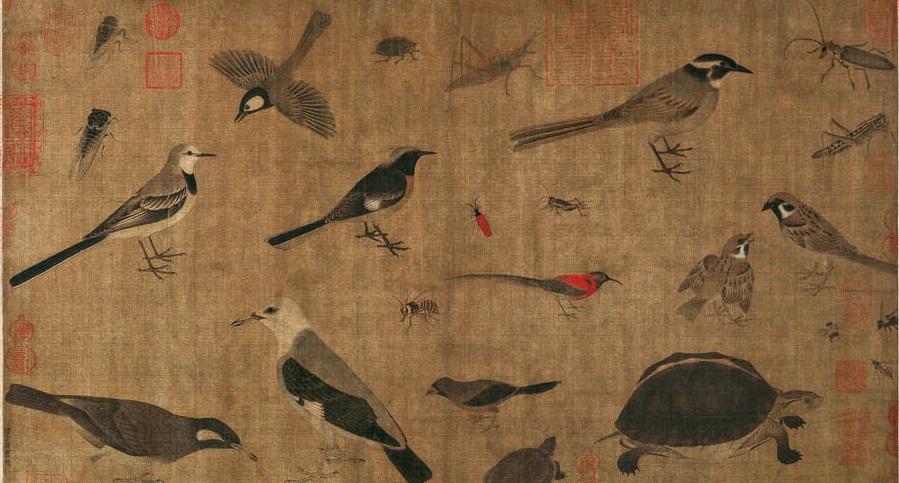 宋徽宗御笔《写生珍禽图》,以椋鸟科、鹎科、山雀科为主,没有靛颏