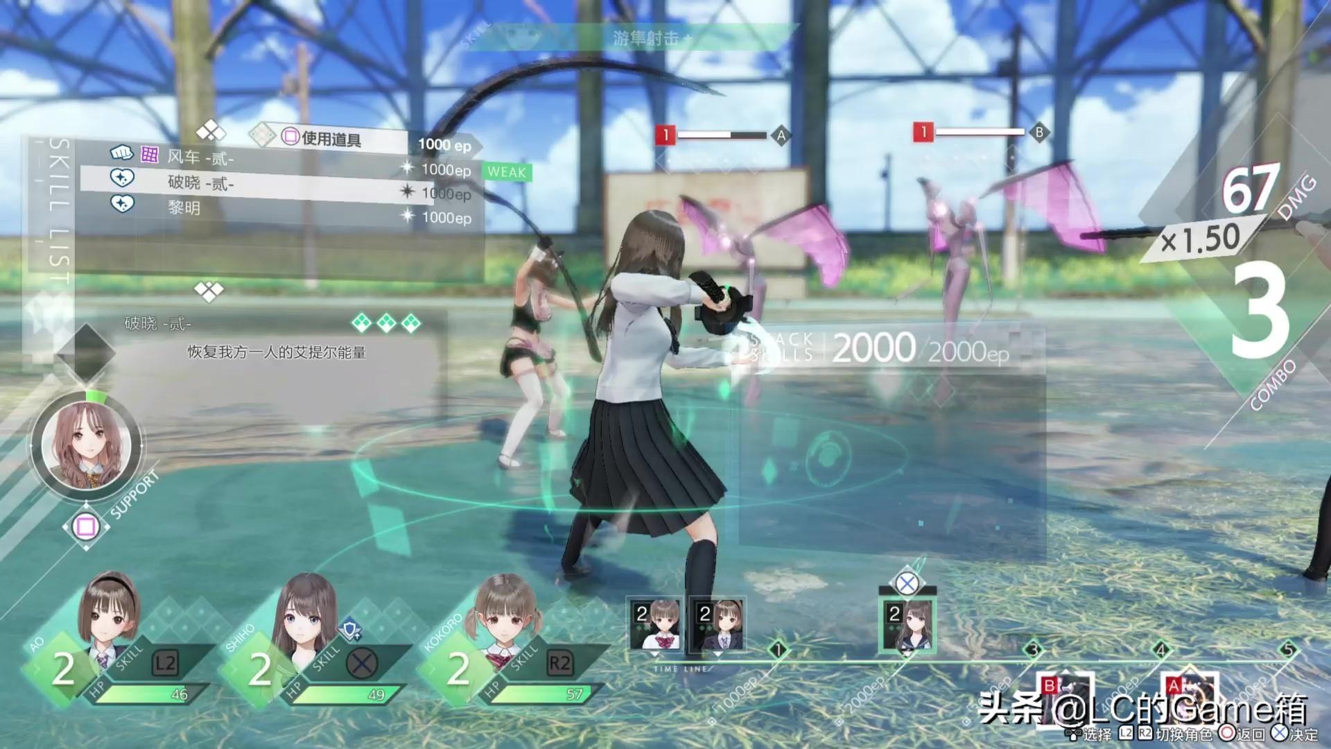 后也会提高角色对敌人造成的伤害,而一些强力的敌人还会使用可以打断连击积累的强力攻击,这时候需要玩家使用防止连击数重置的技能(前期也就女主爱央会),因此有时需要玩家保留行动数以防止被敌人强力攻击打断连击。