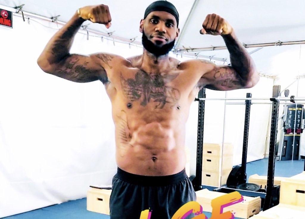 难得一见的詹姆斯腹肌照,詹姆斯空中飞坦克的原因,终于找到了