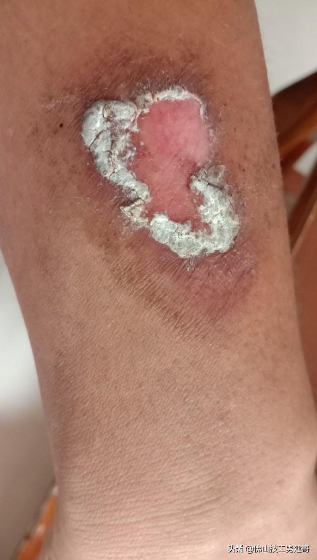第四天早上的伤口,情况更糟糕,又碰掉一大层块白色物体,估计又要迟几天愈合。
