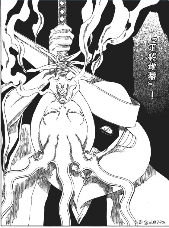 始解疋杀地藏,斩魄刀变出三个扭曲的刀刃,刀身出有一张婴儿脸,其能力极其适合用来严刑拷问敌人,涅茧利这个BT曾经用疋杀地藏折磨死了上百个灭却师,其中就包括石田雨龙的爷爷石田宗弦。