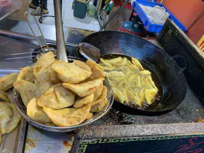 炸制:铁锅置旺火上,放入菜籽油,烧至七成热时下入饺子生坯,炸至呈金黄色时,改用中火再炸5分钟左右,出锅即成。