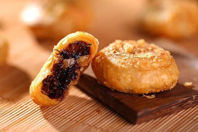 又名皇印烧饼、救驾烧饼、蟹壳黄烧饼,是安徽省黄山市特色传统小吃。刚出炉的黄山烧饼色泽金黄,吃起来酥脆爽口,油而不腻,令人回味无穷。其通常以面粉、肥肉、梅干菜、芝麻、盐、菜油为原材制作皮、馅,经泡面、揉面、搓酥、摘坯、制皮、包馅、收口、擀饼、刷饴、撒麻、烘烤等工序制成,烘烤在炉中进行,内燃木炭,将饼坯贴于炉的内壁,经烘烤、焖烘及将炉火退净后再焙烤,前后数小时而成。