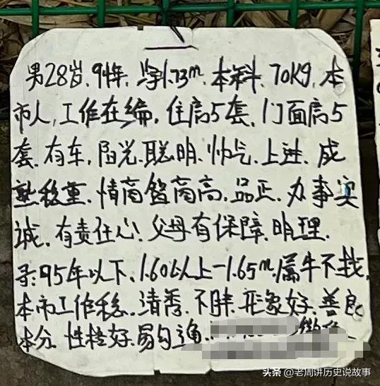 比如这位先生,住房5套,门面房5套,情商智商都高,择偶条件也不高,但是属牛的不找,85年、97年出生的不用考虑了↓