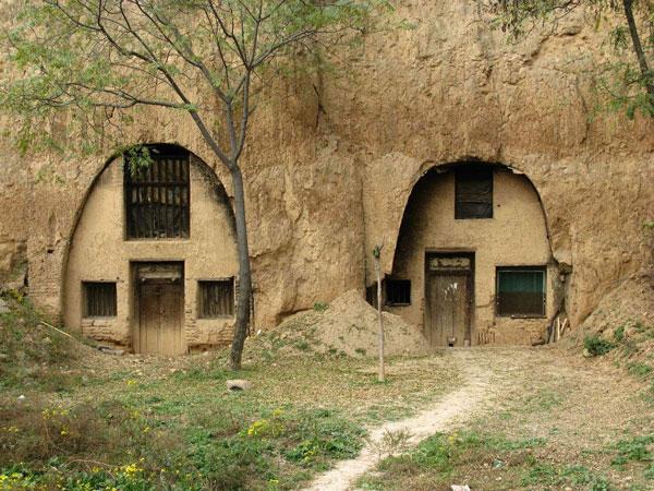 窑洞是陕北乃至整个黄土高原最常见的民居建筑,分为山坡窑洞、地下窑洞和箍窑洞三种类型(不是真正的洞穴,而是建造的洞穴形房屋用砖或晒干的泥砖铺在地上)。黄土高原气候干旱,土质疏松,易挖,当地人特地创造了窑洞。窑洞具有节约材料、冬暖夏凉等优点。