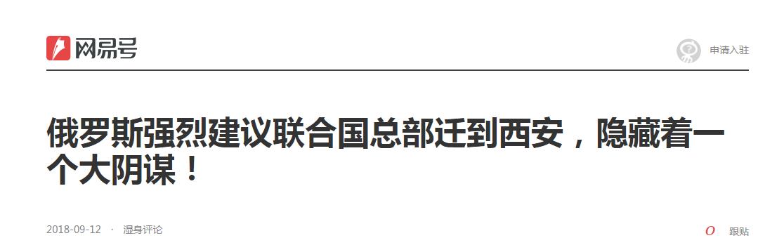 比如说下面这篇2018年的文章《俄罗斯强烈建议联合国总部迁到西安,隐藏着一个大阴谋!》,又将联合国总部扯到了西安。