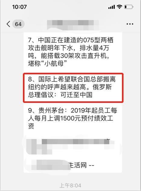 一些热衷在各个群里刷“早新闻”的网络媒体,也指名道姓,称联合国搬迁到中国,是俄罗斯总理提议的。