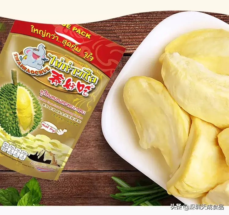 泰国素有“百果王国”之称,是盛产水果的国家。泰国水果品种繁多,四季都有充满果香。在泰国的水果类零食里,最被人熟知的就是榴莲干。