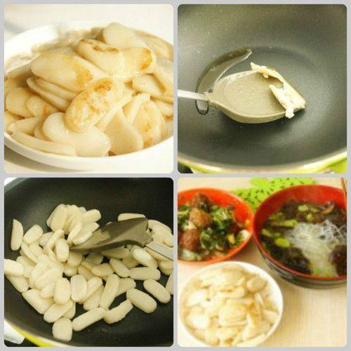 2、锅烧热,下猪油,这道炒年糕一定要用到猪油