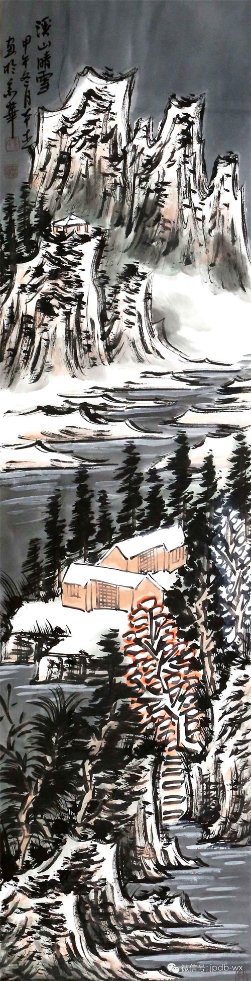 一幅非常不错的冰雪山水画。