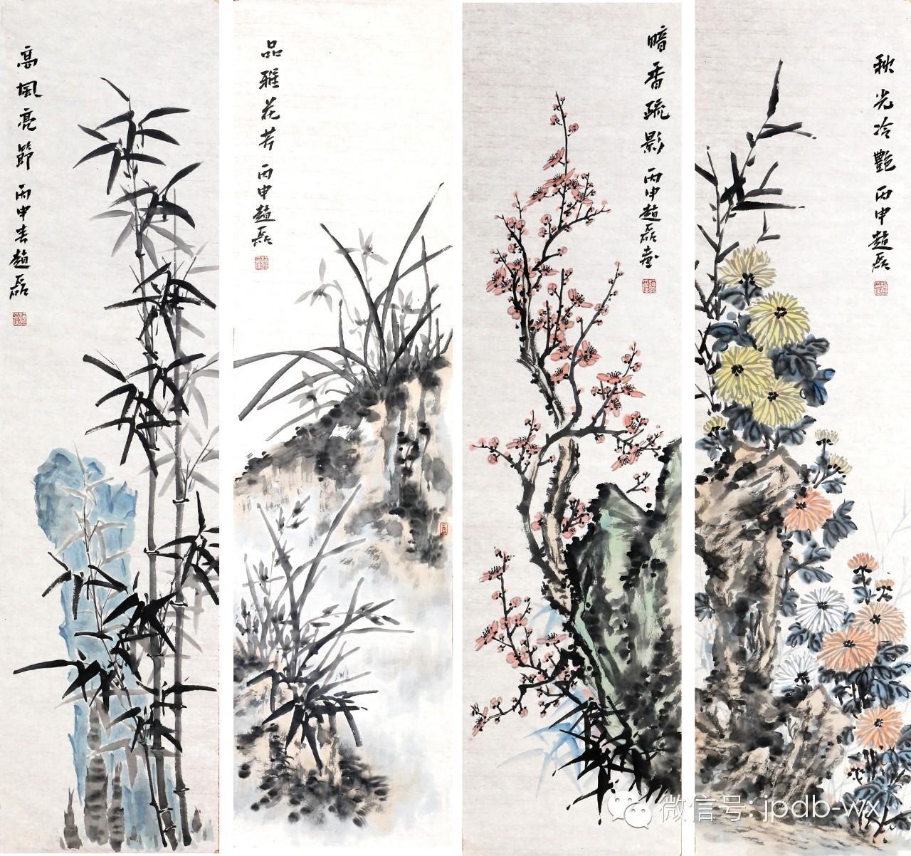 赵磊 花鸟四条屏(136x34cmx4)