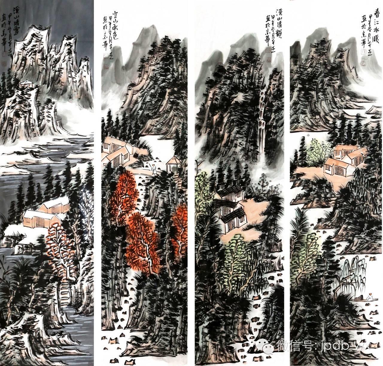王本杰 山水四条屏(137x35cmx4)