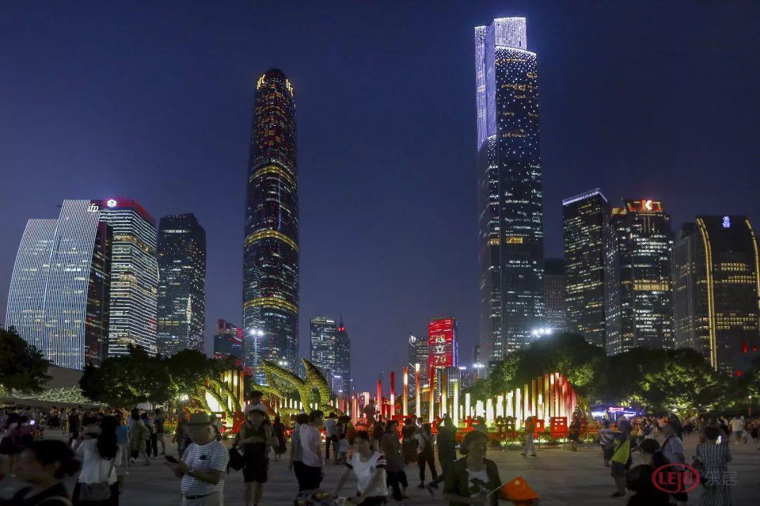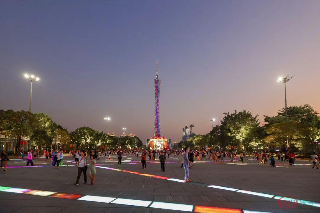 | 夜幕刚落下,花城广场周边的建筑都逐渐亮起了灯,小年轻也结伴赶来拍照打卡