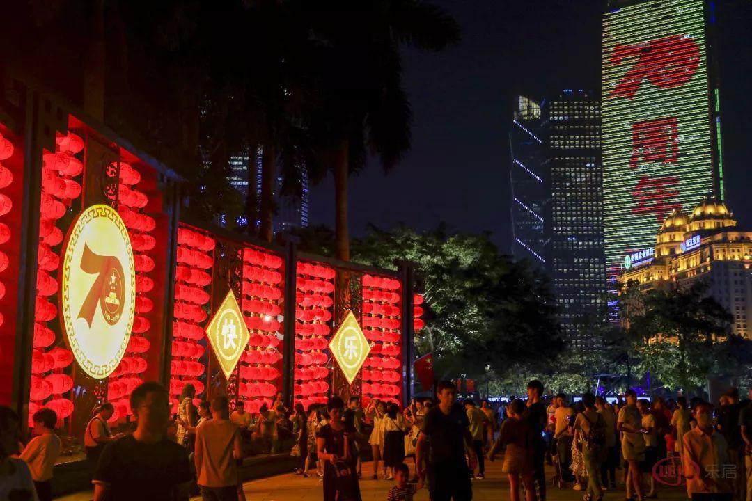 | 花城广场中央,各种国庆元素引来游客争相拍照留念~