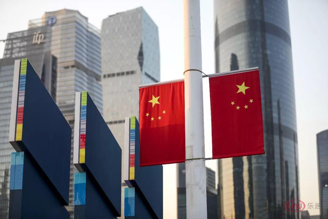 | 五星红旗迎风飘扬,搭配高耸的建筑,特别帅气亮眼