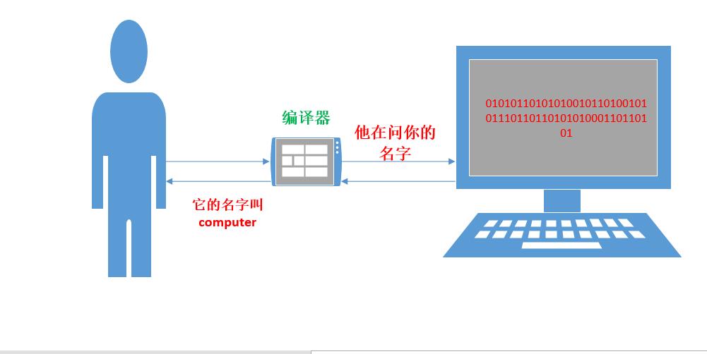 如果想要计算机做到能够正确表达你现在写的文字,那么这时候,编译器就出现了。编译器的作用就是将人类语言(高级语言)转换为计算机可以理解的机器语言。