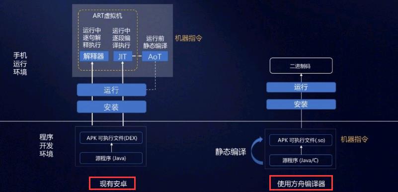 首先你要知道安卓程序是java写的,java程序是将源码代码最终编译成机器码的过程,普通编译器的这个过程是动态的。传统的安卓系统编译,很多程序往往需要一边编译,一边执行;方舟编译器的不同之处是将动态编译改进静态编译,可以做到全程执行机器码高效运行程序,大大缩短了程序响应时间。