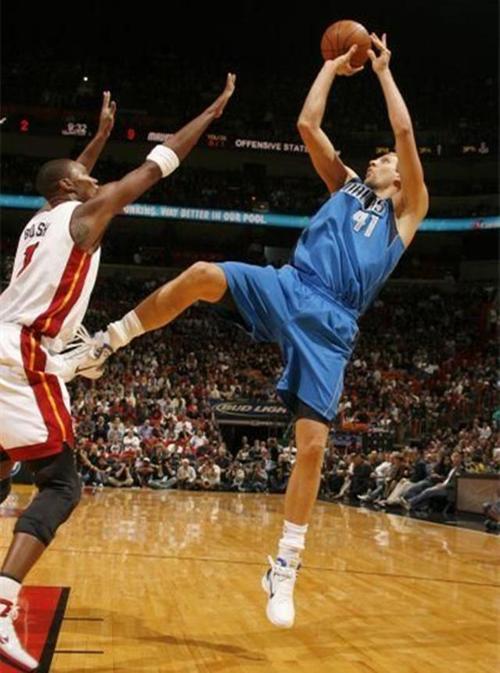之后的事情大家都清楚了,老詹一语成谶,诺维斯基在总决赛就是凭借着金鸡独立,一球一球把热火期待的总冠军给投没了,在那个总决赛里,诺维斯基和金鸡独立惊艳了联盟,也让这个看似怪异的动作成为了老司机的独家秘方。
