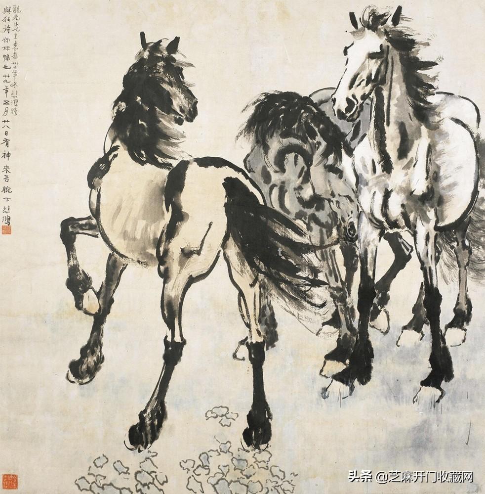 徐悲鸿1940年作三骏图镜心,尺寸:112×110厘米,估价:RMB 18,000,000 ~ 20,000,000,成交价RMB 47,150,000