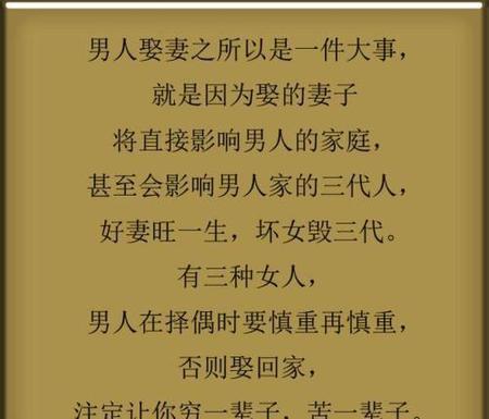 好女旺三代,坏女毁三代!个人认为,找媳妇当娶贤。找媳妇,当看女孩的家庭教育,最重要的是女方的父母!