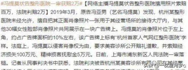 理由是,该院未经冯提莫同意,将冯提莫的正面照片刊登在医院营业厅的广告牌上,并配上“杭州首家网红整形医院”字样,用于广告目的。