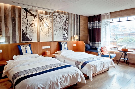 千户苗寨里面有很多特色的民宿跟酒店,如果喜欢景观好一点的,安静一些的,就要选择在山上的位置,推荐入住观景房,躺在床上都可以看风景,要多惬意就有多惬意。我们这次入住的是南山假日酒店,在四号风雨桥附近,景观也很棒,价位是318起。
