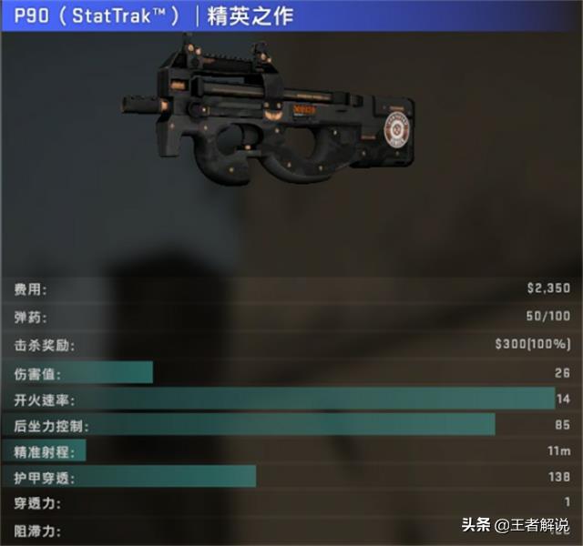 首先,P90的售价是冲锋枪中最贵的,没有之一。并且,P90的击杀奖励与其他冲锋枪不同,是300块,而其他的冲锋枪都是600块。这就意味着这把枪并不能像其他冲锋枪一样可以用来累计经济,所以并不推荐在过渡期选择这把武器。