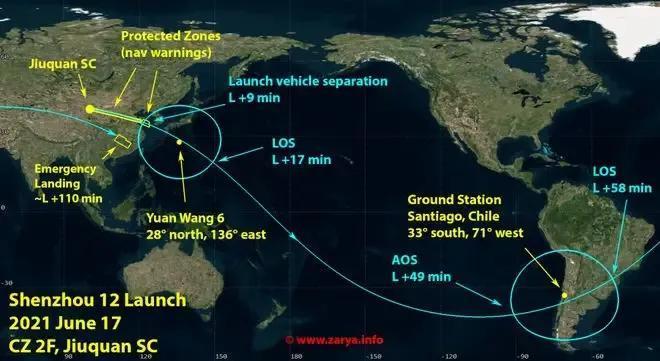 为了实现神舟飞船与空间站的对接,要在空间站恰好经过酒泉东风发射场上空时发射神舟飞船,而且二者的飞行轨迹要尽量接近或重合,这样就可以节省火箭燃料,并实现快速交会对接,否则飞船就要经过多次变轨来调整轨道倾角。