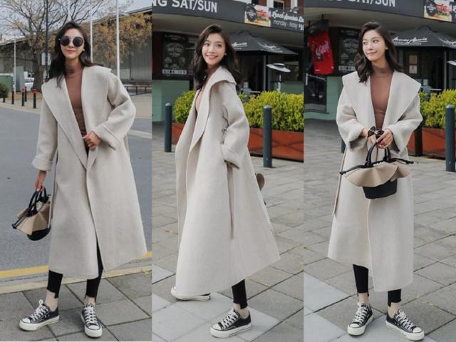 针织版型的米白色大衣,很温柔也很显高级感,有木有?本来就很显气质的颜色,在寒冷的冬天里,穿上这个颜色不仅能打造出温柔高级气质,还十分地时尚好看,大翻领的设计,看着就好大气好时髦感了,过膝的大衣长度,挺括的版型,和黑色小脚裤搭配起来,瞬间穿出显瘦的身材来,很美也很有范。