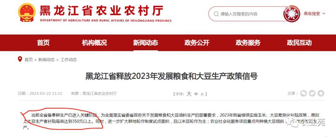(2022年黑龙江省大豆每亩补贴248元。这意味着,2023年黑龙江省大豆补贴比去年高出100元每亩以上。)
