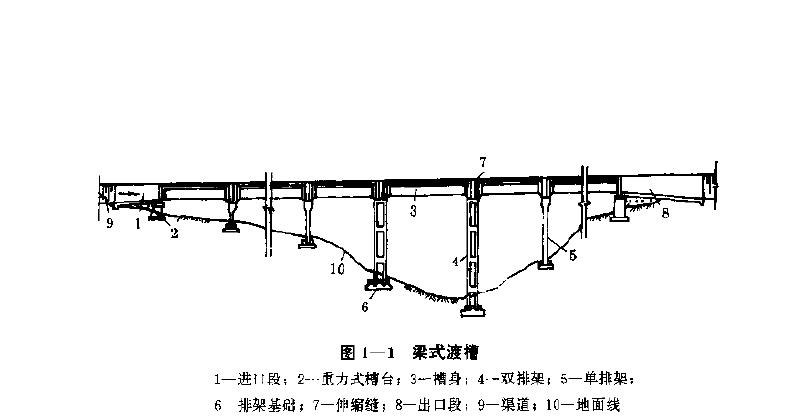 渡槽是由槽身、支承结构、基础及进出口建筑物等部分组成的,如图1—1所示。槽身搁置于支承结构上,槽身及槽中水的重力通过支承结构传给基础再传至地基。渡槽的类型,一般是指输水槽身及其支承结构的类型,可有以下几种分类方法。