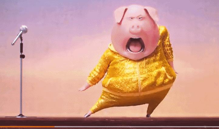 穿着黄色亮片表演服的猪先生唱一曲Lady Gaga的《Bad Romance》,这舞姿好灵活。