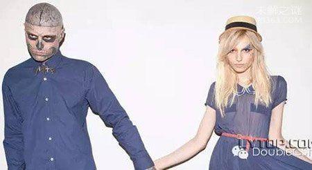 昨天的插图其实是在2011年的时候“僵尸男孩”RickGenest瑞克·格内斯特和无性男模(又称女面男模)AndrejaPejic安德烈.皮吉斯为西班牙某品牌2012春夏装拍摄的一组时尚大片。