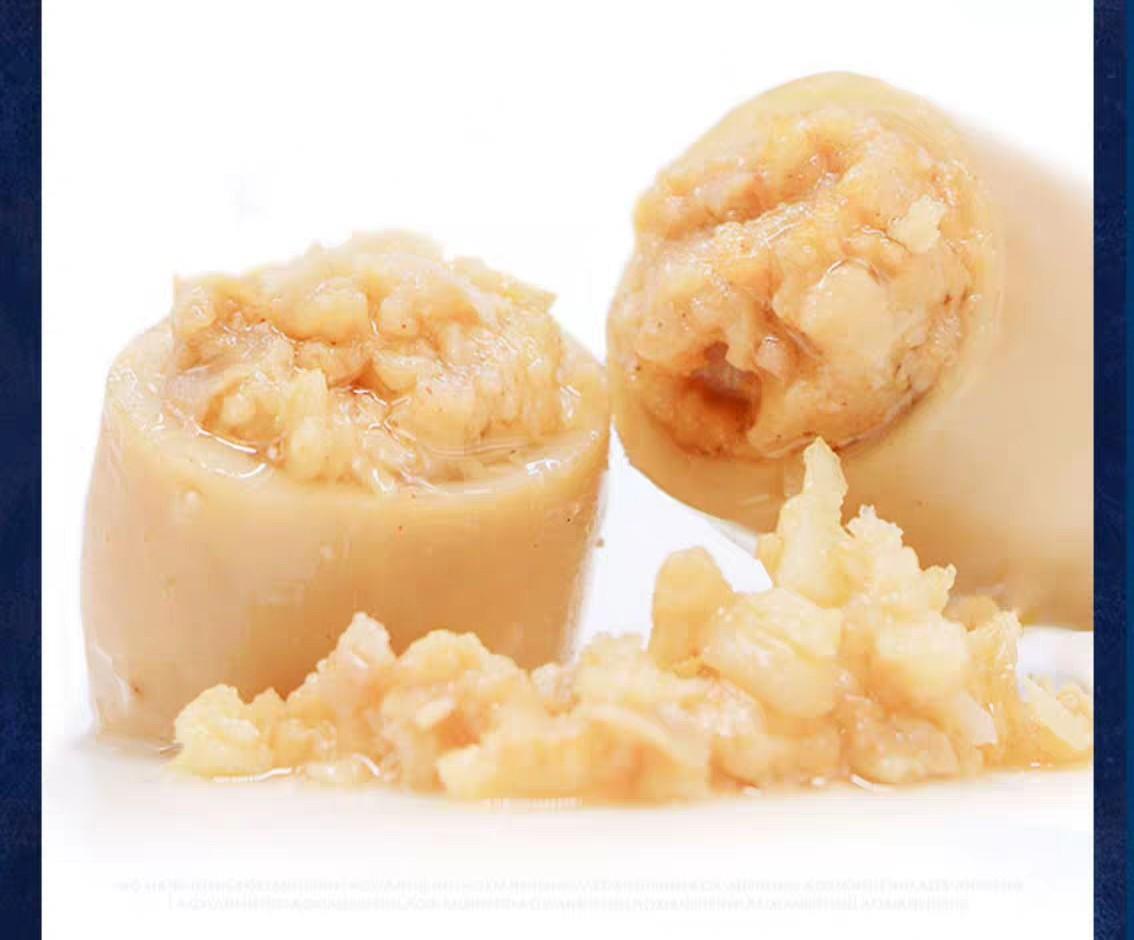 这个鱿鱼仔是由鳕鱼籽和鱿鱼碎肉填充,软烤工艺让鱿鱼非常鲜弹韧。既有海洋的味道还不腥,个头大馅饱满料也特别足。让人吃了还想吃,喜欢吃鱿鱼的小朋友们可以尝尝哦!