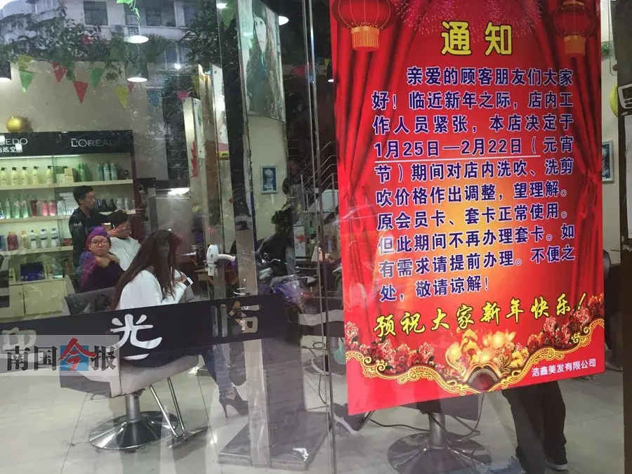 这家理发店老板吐槽表示:往年在快过春节时根本就忙不过来,店里面的洗头小妹小哥哥们是忙得飞起,而今年情况却有点意外,眼看马上就要过春节了,店里面的生意和平时基本没有什么区别,难道大家现在都不理发了吗?