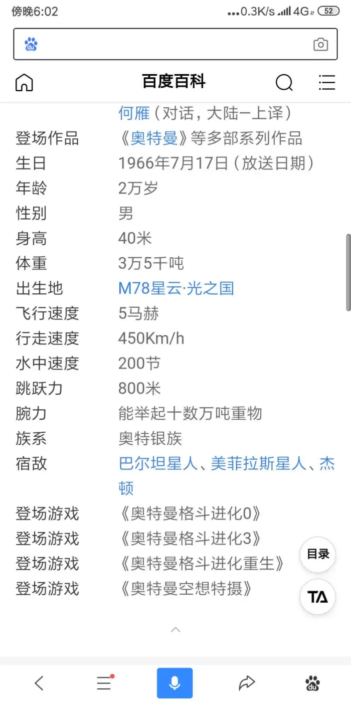 例如初代奥特曼的数据,身高40米,体重35000吨,飞行速度五马赫,能举起10万吨重的物体,水中速度200节,跳跃能力800米。