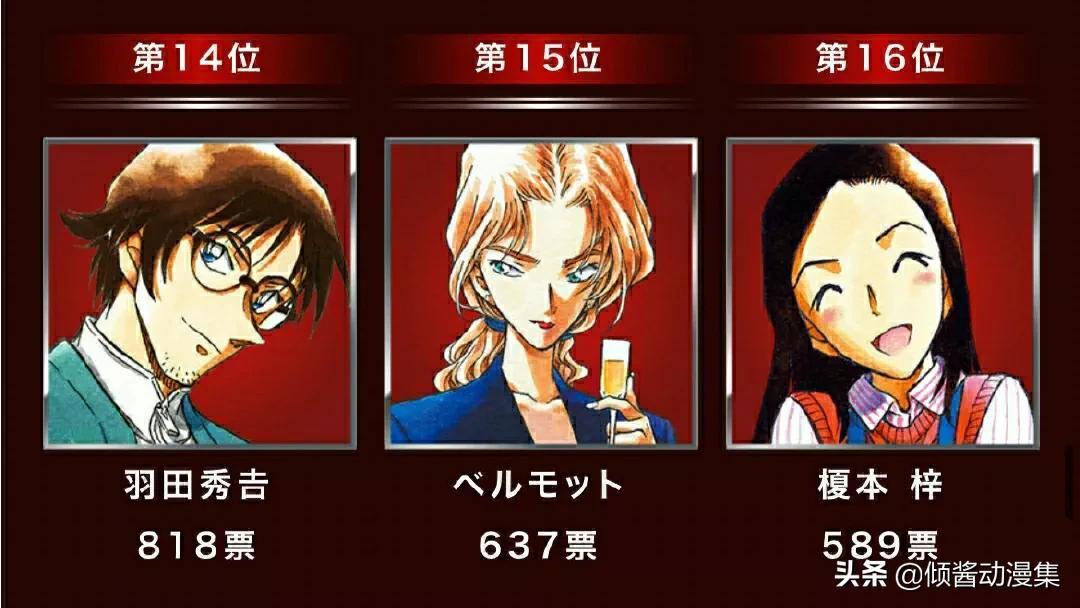 而小梓,能够以589票位列十六,能够拥有如此高人气的原因,一方面主要原因是因为超级打工人安室透/降谷零的登场,小梓是他的同事而同样有了很多次的登场,还曾与安室透一起逛超市时评价夸赞,称其“以后会成为一个好妻子”。