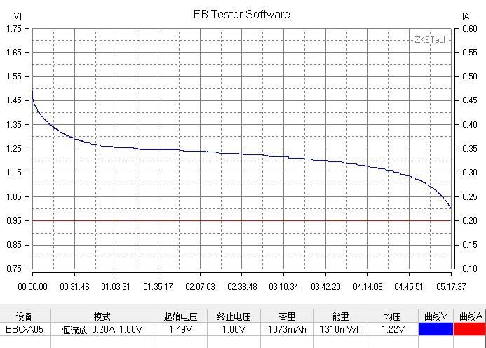 3、旧的索尼镍氢口香糖电池,200mA放电容量(截止电压1.0V)测试环境温度11度: