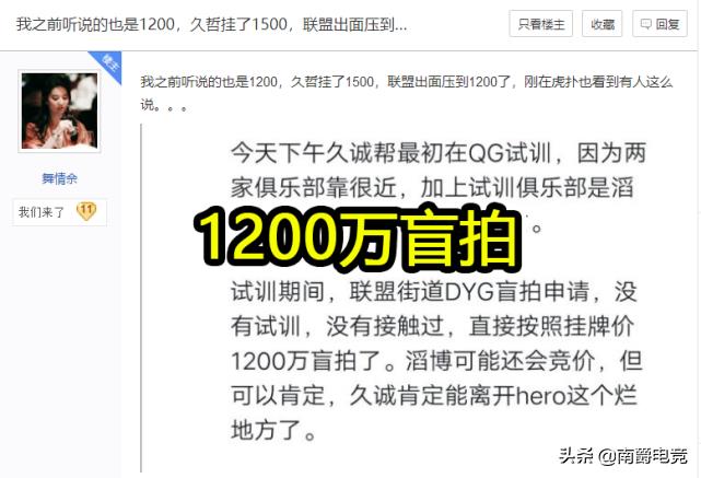 很快又有新的消息传出,久诚帮助最初在QG试训,试训期间,联盟突然接到DYG的盲拍申请,DYG直接用1200万的价格将久诚买走。很多人可能不知道盲拍是什么意思,盲拍就是不试训,不沟通,直接按照挂牌价格付费买人,可以说是非常土豪的做法。因为别的俱乐部一般都会先试训看看效果,顺便和选手沟通一下情况,这才是比较常见的。