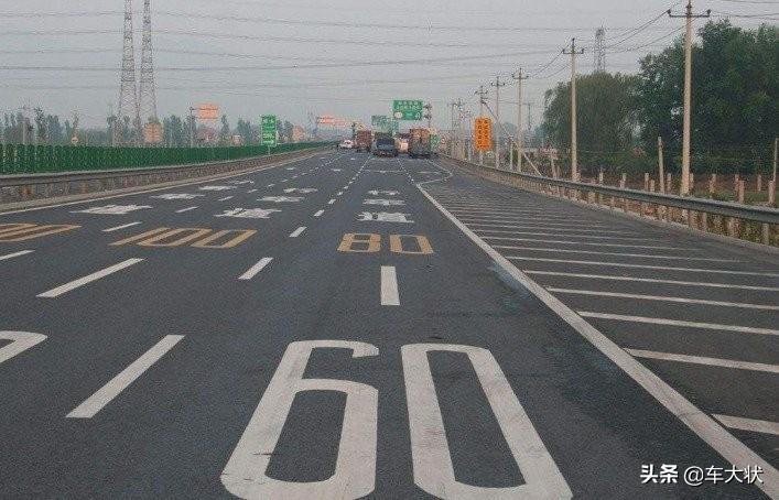 高速公路上也印有路面限速标致,如下图所示,黄色是指最高车速,白色是指最低车速,那相对应的就是最高车速不得高于80km/h,最低测速不得低于60km/h。