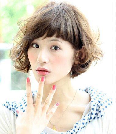 齐刘海的短烫发更是很有日韩女人的潮流感呢,整齐的刘海勾勒出女人天生完美的容颜,而向内卷曲的烫发也是很有轻熟女的feel呢,无论是日常还是参加高大上的场合都没问题哦。