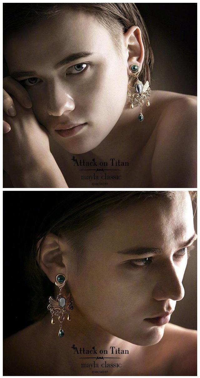 最多款式的男神耳饰,模特小哥哥的演绎更是绝了,配合每个耳饰对应主人翁的性格特质,模特们相应做出不同的妆容和摆出不同的表情,把巨人角色们从2次元破壁而来,多少人被模特们的表现震惊到了?一人分饰多角色也没压力,最为养眼的估计是饰演艾伦的那位模特颜值和气质真的太绝了,毫无违和感!