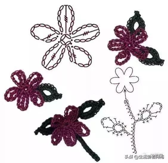 更多的组合方式,等着大家尝试。下面几十款钩针花朵图解,大家收藏好了。
