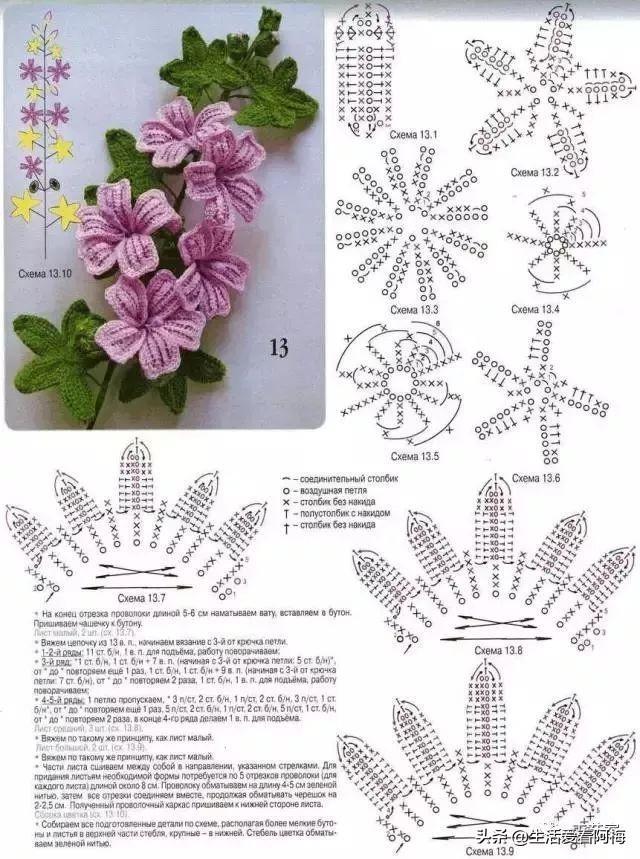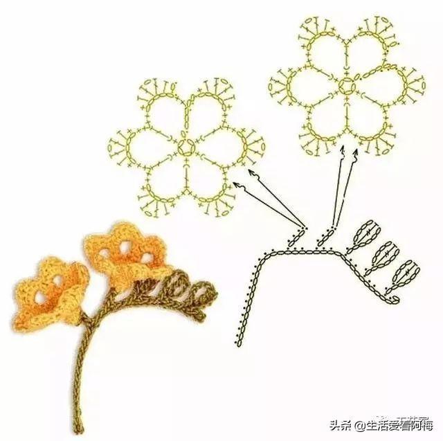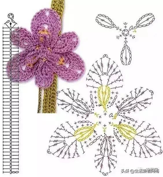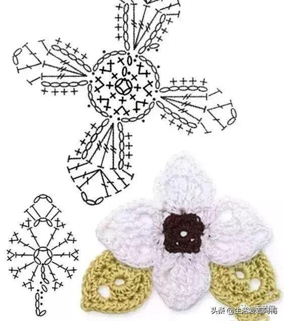 分享34款钩针花朵,学会了,家里四季有花,永开不谢,附钩编图解