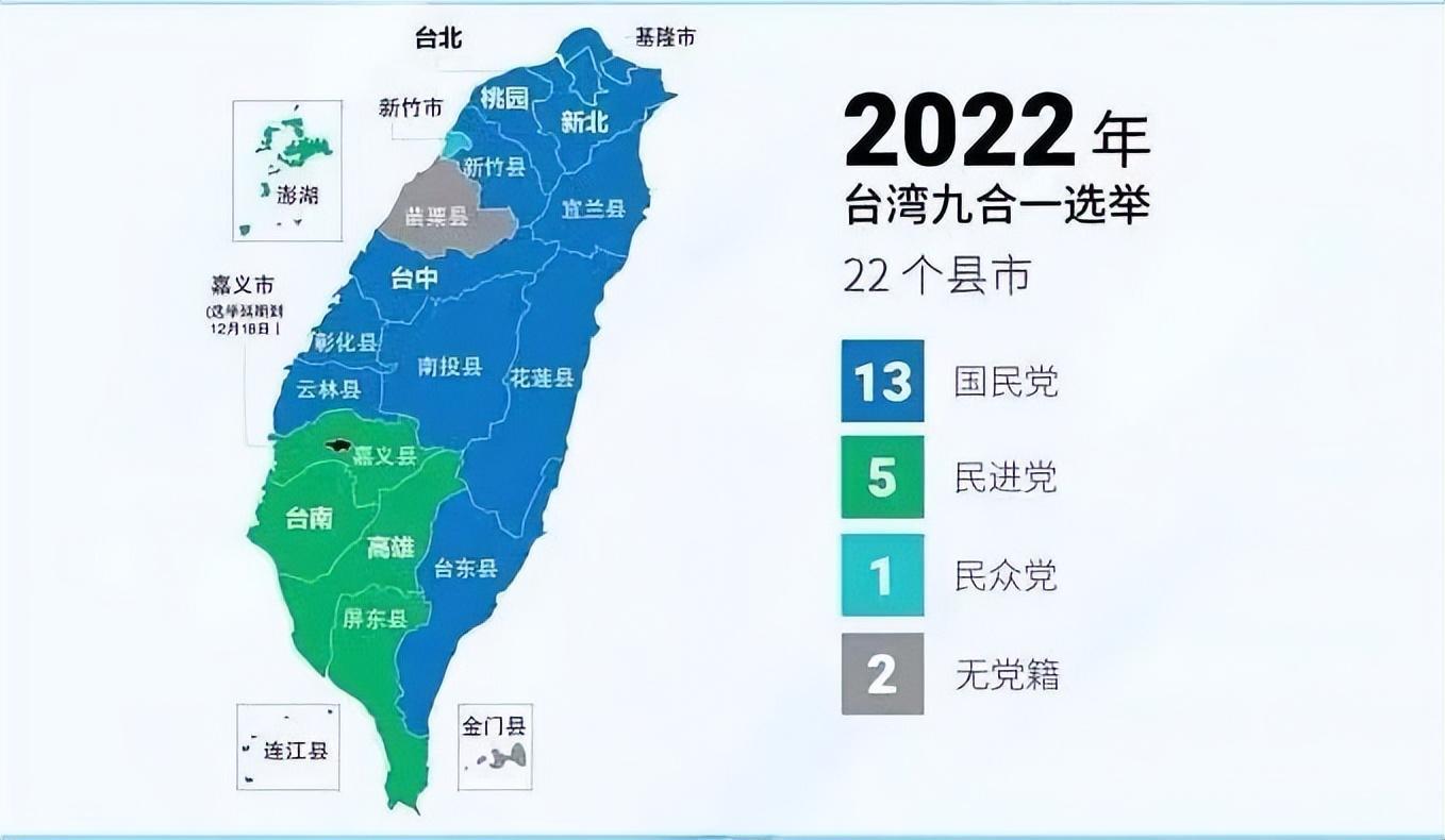 六都部分,国民党赢得台北、新北、桃园、台中四都,比目前多两席;民进党则保住高雄与台南,比目前少一席;县市长部分,国民党赢得基隆、新竹县、彰化、南投、云林、宜兰、台东、花莲、马祖等九席;民进党仅仅保住嘉义县、屏东、澎湖三席;另外,民众党赢得新竹市一席,苗栗、金门虽落入无党籍之手,但两人选后都可能回归国民党。整体而言,国民党得票率50.03%,比2018年多了一两个百分点,而民进党得票率41.62%,比起上次反而增加了2.4个百分点。
