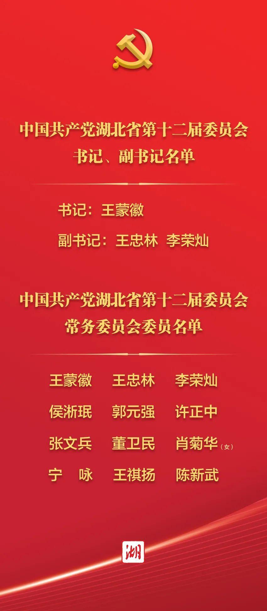 6月21日下午,中国共产党湖北省第十二届委员会第一次全体会议在武汉举行。会议选举产生了中国共产党湖北省第十二届委员会常务委员会委员和书记、副书记。