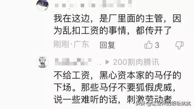一位网友说,“我就在这边,是厂里面的主管,因为乱扣工资的事情,都传开了。”