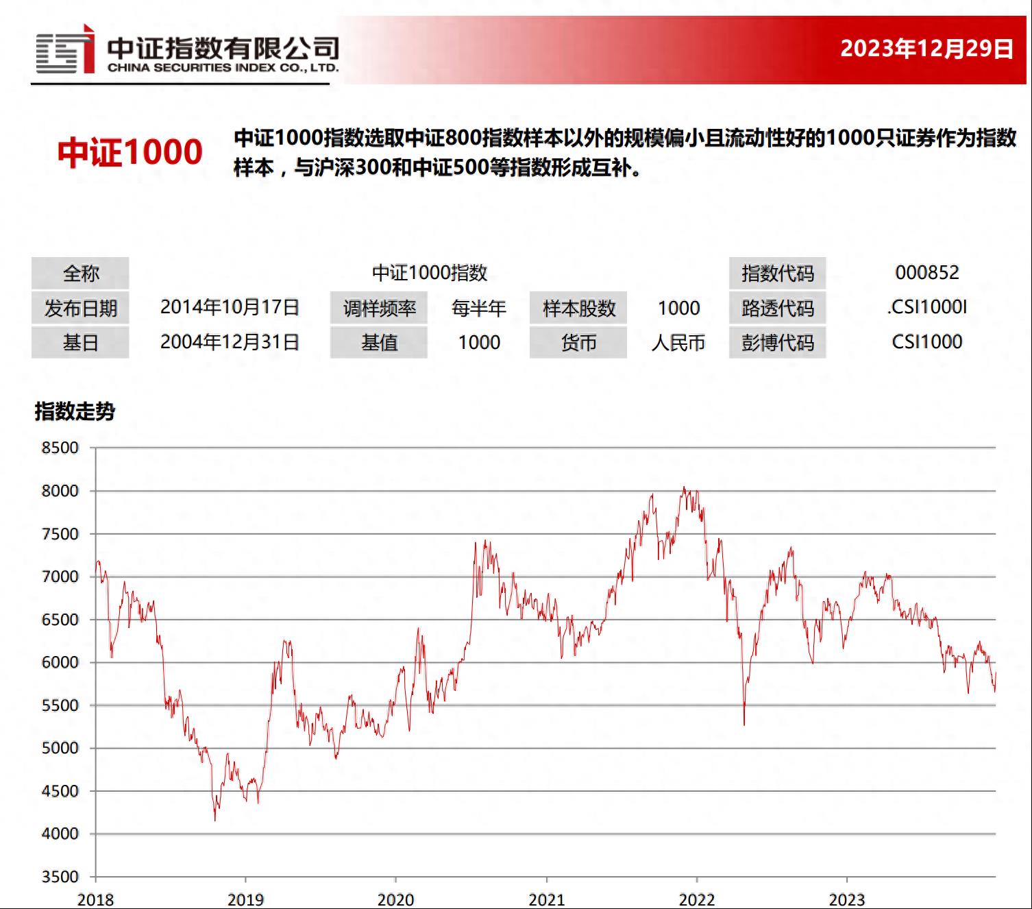 它选取中证800指数样本以外的规模偏小且流动性好的1000只证券作为指数样本,综合反映沪深市场小盘股上市公司证券的整体表现,与沪深300和中证500形成了互补。