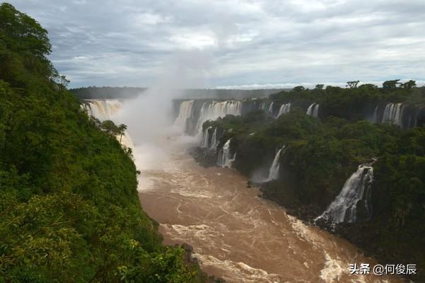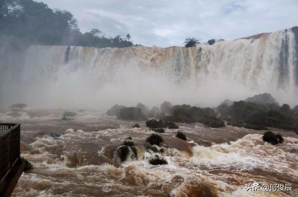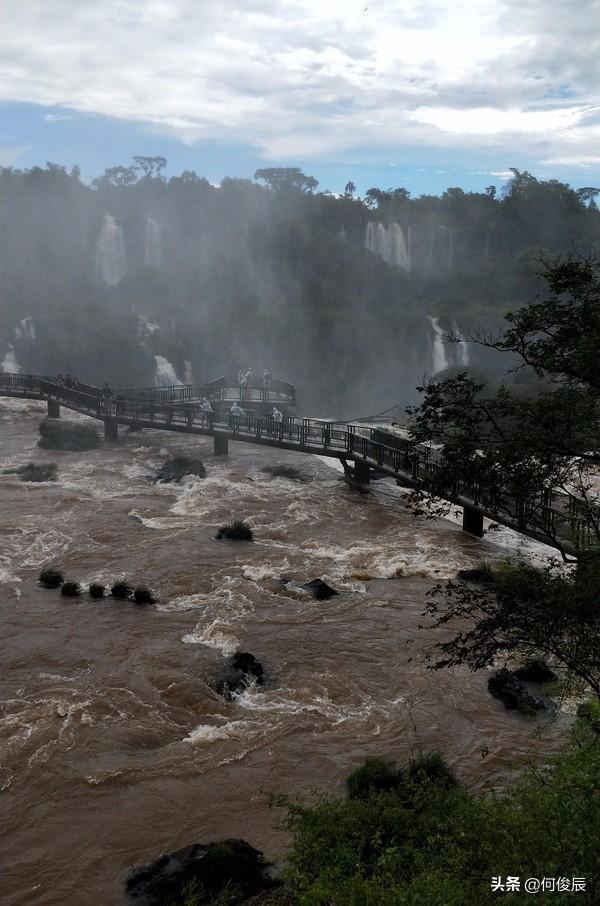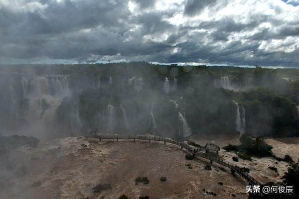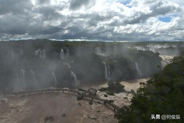 伊瓜苏大瀑布在巴西这边,沿着河道顺着山壁铺设了一条几千米的木栈道,当我走在栈道上的时候,脚下是汹勇奔腾伊瓜苏河水,远处是瀑布群以雷霆万钧之势飞流直下,耳畔是雷鸣般的流水声,此情此景令人终生难忘。